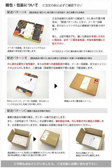 ※本商品はメーカー包装紙で包装済です。そのため、当店の包装紙は選択出来ません。また、のしは外のしのみ対応させていただきます。内のしは対応出来ません。先様へギフトとして直接配送される場合を除き、汚れや破損防止のため熨斗は商品に同梱してお届けいたしますので、商品到着後お客様自身でお掛け下さい。
