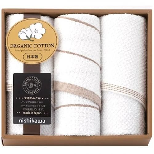 西川 タオル ギフト フェイスタオル オーガニックコットン 3枚 セット 詰め合わせ おしゃれ 綿 日本製 222320319