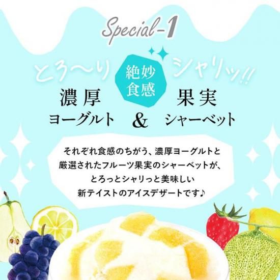 国産フルーツの美味しさを閉じ込めたシャーベットとなめらかなヨーグルトアイスのデザート。二つの味わいが織り成すフルーティで爽やかな美味しさ。